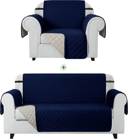 Waterproof Cotton Quilted Sofa Couch Cover - Sofa Protectors (Navy Blue)