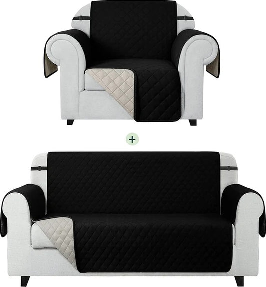 Waterproof Quilted Sofa Couch Cover - Sofa Protectors (Black)